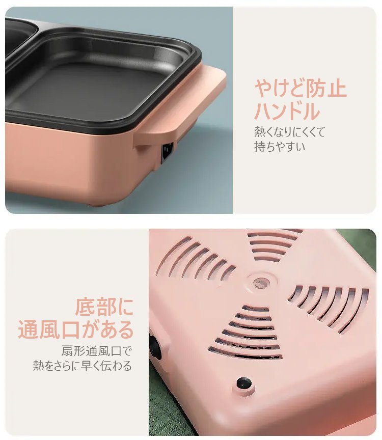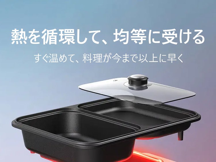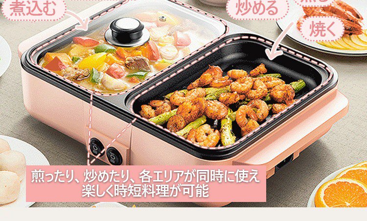 【多機能一体式調理鍋】煮込む、しゃぶしゃぶ、炒める、煎る、焼く、使い分けて料理を作る、くっつきにくいコーティング、油と煙を少量に、2段階温度調節可能